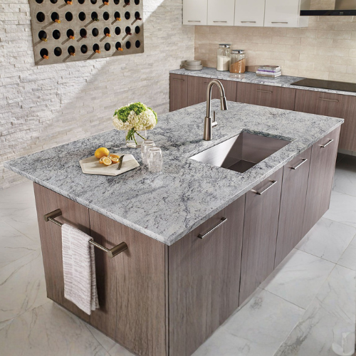 Elegant and sophisticated, Aspen White granite is suitable for interior and exterior projects in both residential and commercial properties. In this beautiful granite, cool whites and grays are complemented with warm gold veins making this unique natural stone ideal for a variety of design styles.