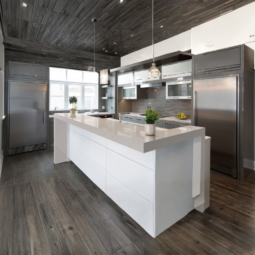 Affordable high-end looks and life-long durability come together in Alabaster White Quartz. This polished marble-look quartz features a soft white background and long gray veins for unstoppable elegance.