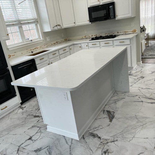 Inspired by the iconic Carrara marble from Italy, Carrara White Quartz offers a clean white base with soft grey veining. It’s a popular choice for both residential and commercial interiors thanks to its classic look and low-maintenance performance.